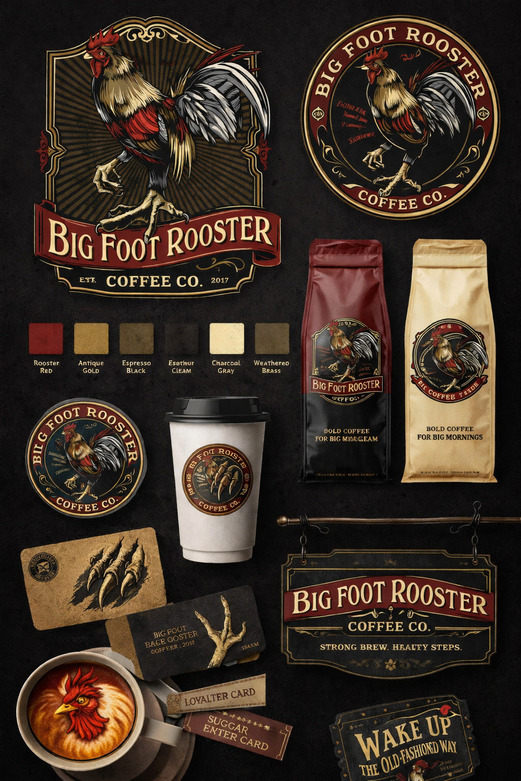 Big Foot Rooster Coffee Branding & Artwork Digital Illustration & Drawings by Josh Garner